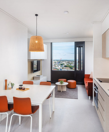 Buat pilihan daripada studio persendirian atau pangsapuri berkongsi yang luas, semuanya direka untuk gaya hidup pelajar yang selesa dan selamat. Dengan ruang belajar khusus, gimnasium, kawasan sosial dan halaman luar, semua yang anda perlukan berada betul-betul di depan pintu anda.